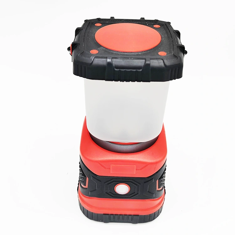 This reliable LED camping light is powered by an 18650 rechargeable lithium battery and also features a USB power output, which can be used as a power bank to charge your device in an emergency. It is equipped with a sturdy metal handle and bottom hook, allowing for multi-directional suspension, the lampshade is detachable and can be used upside down.